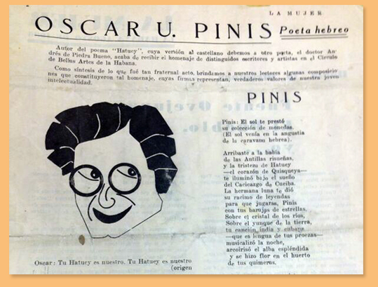 Hatuey is a folk hero revered for many generations in Cuba and the Dominican republic, exemplary in his fight for freedom. In real life, Oscar was Asher Penn. According to The Forward, "In 1931, Yiddish poet, journalist and editor Ascher Penn published Hatuey, a 126-page epic poem about a Taíno chieftain who fought against the Spanish invasion of Cuba at the beginning of the 16th century, and who was eventually burned at the stake in 1512. Born in 1912 in Ukraine, Penn immigrated to Cuba in 1924 following a pogrom in his native shtetl of Gaysin. In Hatuey, Penn drew on the experience of the pogrom to describe the massacre of Taíno natives by the Spanish, and expressed his admiration for Taíno history and culture."